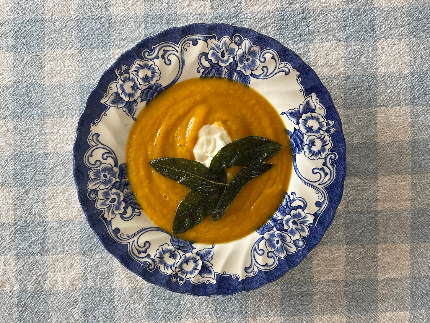 creamy butternut squash soup with crispy sage leaves