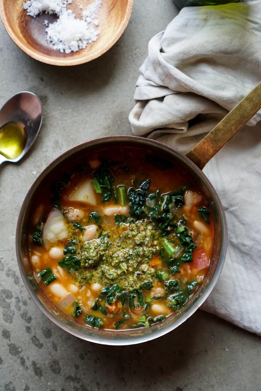Everyone loves a minestrone, and this one is extra luxurious with its dollop of a quick parsley and toasted walnut pesto. The leek and turnip in this add a subtle vegetal sweetness that’s very nice.
